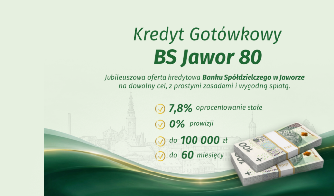 W Banku Spółdzielczym w Jaworze z tej okazji przygotowaliśmy wyjątkową ofertę Kredyt Gotówkowy BS Jawor 80.